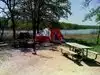 I felt very deceived. Booked a spot next to lake for tents. Stated that there was some shade and 400-500 Ft from a bathroom. Not so bad right? I should have known that the fact they didn't provide ANY pictures of actual camping spot. As they did with others should have been my CLUE, SIGN, WHATEVER. BTW (Wild Plum #126) You have to walk around a bit to get to the spot, not horrible. All the spots we were passing seemed decent until 30 Ft. from our camping spot. The tree line stops and BLASTS you with hard wind, trash flying around everywhere....OH, previous campers must of hated it as much as we did and wanted out of there so fast that they left their men's sz 12 water boots. They left their unused fire wood, would be a nightmare to try and get a fire with that INSANE wind. My 4yr flipped over a rock and surprise scorpion. There was NOWAY we were gonna pitch a tent with that wind. I just don't feel they were very honest about that spot. IF I'D KNOWN, I WOULDN'T RESERVED IT.