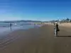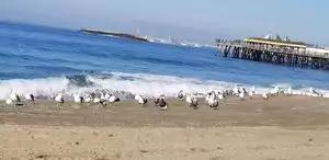 This is a lovely beach along the edge of the Pacific Ocean. Many tourists as well as locals like to visit there, to swim or to surf or to fish. There are many restaurants there along the boardwalk