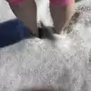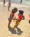 It had sand and water which meet the criteria of a beach but as we played we began to noticed there was yucky sticky stuff on the bottoms of our feet (oil maybe?). What was cool was the boardwalk was nearby so a bite to eat was accessible. There were beach showers and restrooms available also.
