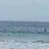 6. One can see dolphins playing in the surf.