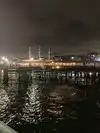 Parked in a lot just south of the pier parking structure and were lucky that someone else was pulling out. Payment is required in the meters even at night. Walked down a flight of stairs to get to the walk/bike path that parallels the ocean. Then walked over to the pier area. Didn't have to take the flight of stairs back up to the parking lot because there is an upper path that leads to it. There are two paths that parallel the ocean. Went over Labor Day weekend during a heatwave. It was hot and humid even here. There were still people on the beach sand in the dark. Some were in the water. Each of the different South Bay beaches has it's own character. Keep in mind that the Santa Monica Bay tends to be polluted.