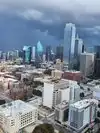 It's a huge skyscraper downtown and you can pick it out of the skyline and you can take an elevator up to the top for a view of the city. Wait for good weather. A new landmark downtown.