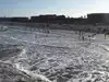 Benches along the pier before you get here. People fishing or just sitting down watching the surfers .