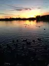 Beautiful lake where wildlife gathers. My grandson likes to there and feed the ducks, geese , fish and turtles. Family friendly with clean restrooms and picnic tables