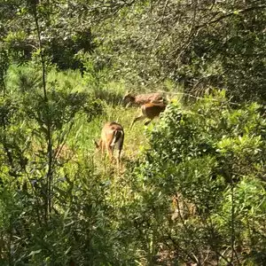 We went kayaking then walked a trail. We ran into 2 deer, they were 10 ft in front of us. They watched us but did not seem afraid.....