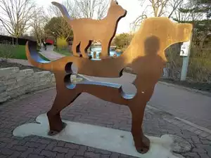 A friend and I visited the Riverwalk in Naperville on a beautiful spring night in April. It was quaint, peaceful & a good stretch of walking! There were paddle boats for use in the daytime & many paths to walk. The flowers were the best part- so many tulips & well taken care of! There were many covered bridges along the walk, which you don't see every day. Unique sculptures too, I included the cute dog and cat one below with my review.