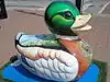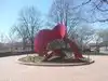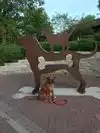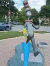 The Riverwalk in the downtown Naperville area is a great place to walk and wander. There are many shops, restaurants and sites to take in the area. Parking is available but a bit limited during busy times. There is no fee to enter tge Riverwalk though sone available activities require fees. There are many statues and works of art to take in the area including three statues on the RoadsideAmerica.com list: Dick Tracy, the Cat in the Hat (at the library) and Dark Naper. The Moser Tower and Millennium Carillon are visible along the Riverwalk. When we were there in July, there were decorated ducks all over this area.