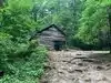 We continued on.l and stopped at the next homestead and then into the grist mill. The roaring fork river is next to the road after grotto falls.