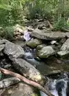 Our favorite spot was the Ephriam place near the end of the trail. The rocks and boulders in the river past the house were perfect for our whole family to climb and get amazing views of the trees, river, small falls, etc. It was magical.