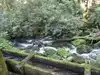 This road is very narrow and windy and steep. There are several areas to pull over to enjoy the stream and woods. Some parts are a real tight squeeze due to narrow road and cars parked on road. It is not at all straight forward finding the entrance to the road, but go to traffic light No. 8 and take a left as you approach from the north.