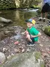 We intended to go hiking to some falls but found that the parking was full with people waiting to park ahead of us we decided to skip the hike and instead found parking on a nice stream and spent the next hour letting our grandkids splash around .