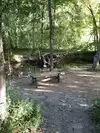 A picnic area at the top of the hill part of the Rock Bridge Memorial park.