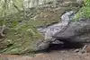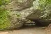 In addition to the natural beauty of this park there is much history. Walk the "Sink Hole" trail from the parking lot and see if you can find the groove in the sandstone outcropping from steel rimmed wagons on years gone by? HINT - on the right side of the small stream as you walk this trail. There was a mill to grind grains, a distillery and tannery among various businesses that once called this area home. The most famous of the "sink holes" is Devil's Ice Box. A great place to cool off with the steady stream of cool air escaping from the Ice Box. Be sure to take the trail that actually forms the rock bridge over the small stream.