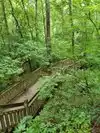 Wooden walking trail. Nice area for a picnic or to relax. Has an actual old rock bridge that you can view. Bathrooms across from parking lot.