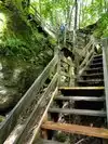The 0.5 mile Devil's Icebox loop includes a hike under a rock bridge over partially submerged rocks in a wide stream bed AND a hike down stairs to a cave that can be explored. Lot's of fun and lots of stairs.