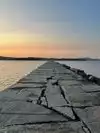 This is a nice walk to see the sights from a waterfront perspective. The walkway is about 1 mile long one way to the lighthouse and is made up from very large (granite?),slabs stacked together but with some large gaps and uneven surfaces. Best to only walk, not run and with daylight. Sunsets and moonrise is spectacular. But plan to be almost done before dark.