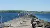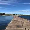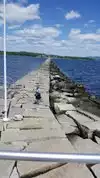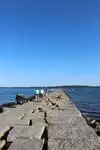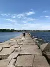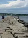 Long walk, but lovely view once you get there. If you have animals, please take some water on a hot day (for them and yourself). It is nearly a mile out and not an easy mile. The rocks are flat but still uneven so wear some hiking boots if you have them. I wore walking shoes and after a while the hardness of the rocks took it's toll on my poor feet. Be careful of the cracks, one women stepped wrong and sliced her leg open. If you want to look at the boats going by, please stop to look. One wrong step and you would be quite a ways from getting help. If you bring young children or small pets, be prepared to carry them. I saw one stroller sitting in the rocks to the side so I imagine it was too difficult to maneuver between rocks.