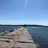 Don't take this walk lightly and be prepared. There are no facilities at the end, NO bathrooms or water, etc., so plan wisely. Take everything with you that you think you might need. Carefully watch your footing, as there are many large cracks in the breakwater. Otherwise the scene is beautiful! Clear water near the rocks of the breakwater, blending into rich deep blue as the sea runs into the horizon, sailboats anchored nearby or with sails full traveling to the distant coastline. The Lighthouse is the cherry on top at the end of the walk. We love them and check out all that we can. You can't go inside, but you can walk all around it. Also, be aware that once you get back to the parking area, there are no restroom facilities there either! A wonderful treat for us on a cool end of summer blue sky day!