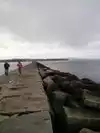 Beautiful day for a 2-mile walk out to sea! The breakwater is very stable and mostly flat, but it is a 'concentrated' walk to the lighthouse. It looks shorter than it is until you look back at the teeny-tiny people!