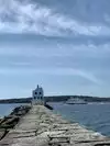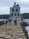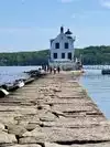 On our recent trip up the coast of Maine and into New Brunswick, Canada... we made an overnight stop in Rockland, Maine. We did a quick google search and realized the Rockland Breakwater Light was just a few minutes from our hotel (the Rockland Harbor Hotel). We took the advice of other reviewers and wore tennis shoes and took our bathroom breaks before going to this lighthouse; there are no bathrooms at the light. In addition it is a 7/8 mile walk each way to and from the light on some pretty uneven walking surfaces. BUT THE VIEWS!!!! Wow. We were able to literally walk out into the Bay (on a rock walkway) and enjoy the breeze and the sealife swimming by (we saw multiple LARGE jellyfish swimming by). It is breezy and a long walk so make sure to wear comfy tennis shoes, take your bathroom breaks before arriving and bring some water to drink.