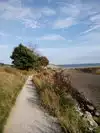 A 3/4 mile walk over fairly level granite boulders suggest you be careful as their are some gaps in the boulders— not a good idea for persons who need walker assistance. Beautiful view of passing boats— of the town from about a mile away— of the islands in the distance.
