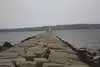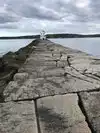 It doens't look all that far but believe me, it is. Especially with the wind blowing hard. There are these huge slabs of granite laid out on the breakwater with large cracks between that you need to walk over to get to the light house and it is pretty close to a mile long. You walk out into the ocean, basically, and their is nothing to keep the wind from tearing into you and the water from the waves from getting you. Wear good hiking boots and warm clothes if you aren't there in the summer. There are no bathroom facilities at the end and then you have to walk back again! It's certainly worth doing at least once.
