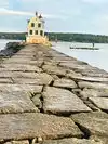 I almost missed this place but saw a small sign on the road from Rockland to Camden that said lighthouse. I had no idea I would be walking on a breakwater! Yes, it’s about 7/8 of a mile one way, looking down at my feet most of the time, but I thought it was a cool (safe) experience. Other reviews are correct…every time you look up it feels like you still have a long way to go. The lighthouse is not open but I’m glad I made the trek. I was leaving close to sunset and the light hitting the breakwater was beautiful. Definitely a unique lighthouse visit! Just watch your step and take your time. You can find parking close to the water or if it’s full, there is a lot/field that you can also park in and make a short walk along the road to the starting point.