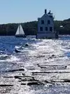 The morning sun will warm you as you walk along the along the stone break water that leads to the Breakwater Light. The maritime history of this picturesque spot at the entrance to Rockland Harbor will excite the sailor in you. With the Samoset Resort behind you and the open sea in front of you, what better way to spend a delightful morning on the Maine coast. Wear good rubber soled shoes as the path is all huge rocks (it's a break water) which are wet in some places. The lighthouse, dating back to the 1850's, reminds us of the days when technology was much simpler and the wind was our means of transportation. Careful there Matey...it's a two mile round trip.