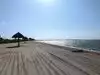 Beautiful beach. Has numerous tiki style umbrellas along beach so only need to bring chairs. Nice walking to view waterbirds as well.