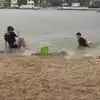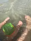 2. Water. It's not "crystal clear". It's the same as Port A. It is true that you have to walk hundreds of feet to get to waist deep water. If you want to go out to neck level you're barely going to be able to see the umbrellas back on the shore...you have to go far out. It feels like an optical illusion when you first see people that far out still standing in such shallow water. If your kids are into body boarding, it's not going to happen here. If you go out rally far you can get an ocean like wave experience only the waves don't break.