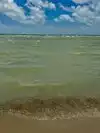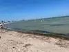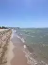 Nice family beach. Shallow water, cabanas and picnic tables. Sand was somewhat gravelly and water was extremely warm due to shallow water. No waves.