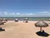 Enjoyed the cleanliness of the beach, with small thatched roof shelters providing relief from the sun. Waves are small and water is shallow, so it's great for young children. We did see a few jelly fish.