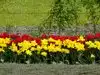 Good to have photographs with different rows of different colors and variety of Tulips.