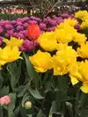 It was kind of wet the day we visited the flower gardens at Roozengarde but the weather failed to put a damper on our experience. There is lots of free parking and I imagine it's pretty crowded on a sunny day in April. There is an admission charge of $ 5.00 but it's worth it. The fields were muddy. You might want to bring rubber footwear. The daffodils were at their peak and many of the myriad varieties of tulips, accented by multicolored Hyacinthes, were starting to bloom. It was quite a sight and a great photo-op. There is a nice gift shop, lots of Public parking and a small food court serving fast food, drinks, popcorn and homemade fudge and other candied treats. Worth a visit.