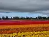 Fields of tulips as well as gardens arranged with great color combinations. Be sure to go early as it gets busy. Drive the area to see other fields in bloom.