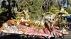 While visiting the small town of Sierra Madre, we had the opportunity to visit the site where their float was being decorated and even got to participate in the decorating activity. The night before the parade, the float was brought to the center of town for a well attended viewing and photo ops. The next day, we watched the parade in the comfort of our family's home. On January 2, all forty of the floats were on display on the blocked-off streets near Pasadena High School. We could get up close and personal with the floats, talk to people about various types of organic products that were used in the decorations, and could walk around the floats, thereby seeing all sides of them. The following day, the Sierra Madre float was returned to the center of town and people could purchase flowers off the float to begin raising donations for next year. My wife made a beautiful floral arrangement for our daughter-in-law using orchids, lilies, roses, and greenery from the float, and also made potpourri from some leftover roses. We all believe our Rose Parade experience was fantastic - and we never had to fight the crowds.