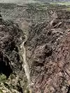 Been wanting to stop here for years, but never travelled that far south into the Colorado Rockies. Worth the wait. The Canyon was deeper than I imagined. The included gondola ride was impressive. We saw a large heard of young Bighorn Sheep lounging in a grass area, fenced off to keep people from bothering them. They can escape in a single bound, but people can be stupid with wild animals. The walk back across the bridge was smoot, but my wife was content to stay in the center of the wide path and not approach the rails. Super, new visitor center. The old one and the tram to the bottom burned down some years back.