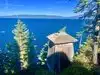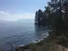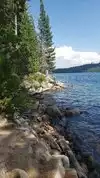 the trail is easy and winds you along some popular (campground) beaches and offers various views of the mountains and lake, but the BEST PART of the trail is the small, rustic, unique lighthouse. You aren't going to find the standard house-sized maritime lighthouse... but instead something that looks like an outhouse, barely big enough for one person, but with it's very own history and claim to fame.