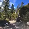 The hike is up and down, canopied and open sun. Not too bad for climbing over huge boulders but definitely a hike that requires you to look down and watch your step over roots, rocks and narrower passages. If you park on the road and hike back just be aware the trailhead is very deep into the park.