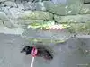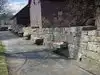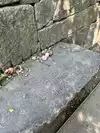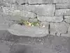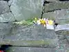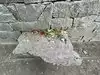 Nicely explained by tour guide, Karen. Interesting that stone wall created without mortar. Flowers on cantilevered stones.