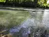Besides the water being freezing, there was tons of grass/moss, and it smelled like a stinky zoo! Tons of people and dogs. Lots of garbage floating in the water and lining the sides of the river. Please wear water shoes as I did find broken glass on the rocks that people were walking on. Was there less than an hour and saw 2 girls crying from almost drowning after flipping over in the rapids. People need to be careful when going to this river! Also, dont wear any valuables as you WILL lose them!!