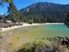Stunningly beautiful beach with colorful clear water and visible rock formations all around... This is a magazine style *must-do* Tahoe Experience... There are 3 "sections" of the beach each offering something a bit different but all close enough to walk to... You must *arrive early* to get a parking spot (read up on recommended arrival times but it could be as early 8 am on weekends and 9-10 am on weekdays - once the lot is fill up in the morning it closes until the late afternoon, with no walkins or drop offs allowed)... Just do it and plan to spend the day, you'll be forever thankful you do...