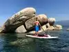 This is a great place to kayak. I launched my own kayaks from South beach in Sand Harbor (south beach has no stairs going from parking lot to the beach). Easy parking and $10 to park for the day. I headed south from the south beach and paddled past thunderbird lodge. Although you can’t stop at thunderbird lodge, there is a little sandy beach just before to stop for lunch. The water is spectacular and clear with rock formations underneath the water.