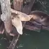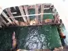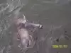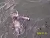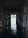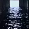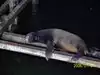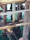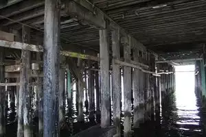 Sea lions are often perched atop a plank seen through a large opening in the deck of the wharf towards its end. When you hear them from the beach, you know they're way down at the end of the wharf.