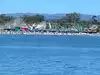 Combination of restaurants, retail, locals fishing, sea lions sunning, magnificent spot for whale and sea lion observation, drive out and park. Low key and NOT crazy chaotic. Love it!