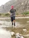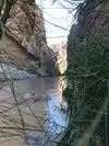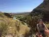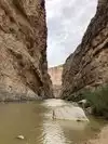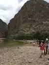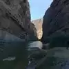 It was busy when we arrived, the parking lot was full. Walked up the trail to the river, there were a lot of people playing in the brown water! We could see the canyon but it looked ike there was no access to it as the water was quite high, there had been a lot of rain the previous week and the road coming in was still flooded! Then we saw the way across the creek to the rope, lucky we both had open hiking sandals on, also had hiking poles to test the depth of the water! Walked up some rock switchbacks a bit like Walters Wiggle and then into the canyon, not a lot to see apart from the canyon walls. We didn't make it to the Rio Grande as the water was to high in the Canyon, disappointed!