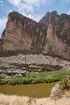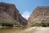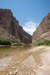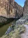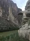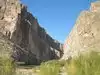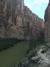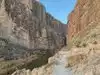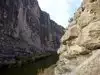 One can see the entrance to the canyon from a long way off. That increases the anticipation. The high canyon walls along the river in Mexico can be seen from a distance also. The short trail leads to the Rio Grande River on level ground. Then the trail leads up a steep path for a short ways to wonderful views of the river and steep canyon walls. Usually there are kayakers and canoers doing their float trips. Gives a great perspective for pictures. It is cool in the canyon so on a hot day that would be a great place to go. Be sure to do the entire trail. Some people turned back rather than descend to the river level at the end. But it is worth the climb back up to return. Don't miss!
