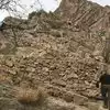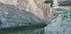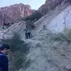 There was a make shift path a ways down to the right where the river was almost dry. In order to get to the trail, however we had to traverse a cliff. It looks more intimidating than it actually is. We had a party of 9 ranging in age from 9 to 67 and we all made it both up and back without too much trouble.
