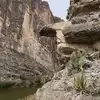Drive to the end of the Ross Maxwell Scenic Drive and park, then cross the river to get to the canyon trailhead. There is no bridge, so bring shoes that you can get wet. The rocks in the river are sharp. Many people cross barefoot, as we did, but it is painful for tender feet. The hike itself is short and intriguing.