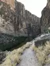 The canyon view from the Rio Grande on this trail is stunning; well worth the very short hike. But we were unable to hike into the canyon due to high water.